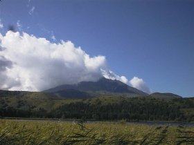 近づくと山頂は雲に隠れてしまいました。この島は火山そのものです。翌日会った日本レンタカーの女性は、 |