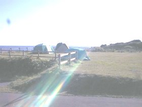 夕暮れにはまだ早い時間ですが、沓形に戻ってきました。 沓形岬公園・キャンプ場に行くと、いくつかのテントが張られています。一人用テントが多く、自転車でツーリングしている少年たちのものでした。 |