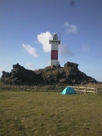 灯台と芝生とテントの調和がすばらしい。 ちぎれ雲も絵に描いたようです。 |
