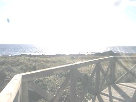 | ミニ・ビジターセンターから海を眺めます。 やがて夕焼けが始まるでしょう。 |