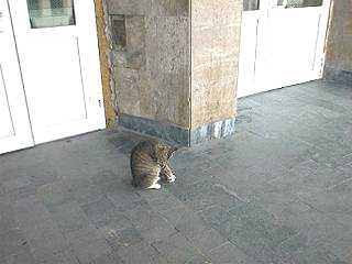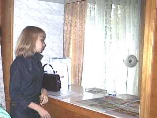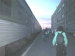 6:10、少し日が陰ったので夕食をとりに出ることにしました。アリオナさんに聞いた日本食レストランで、その名も「日本みたい」というのです。アリオナさんは「大きな看板があるのですぐわかります」と言うのですが、この国の店舗の看板はおおむね小さく、住宅併用のビルの中にある場合など、B3くらいのプレートが壁にあるだけで、中に入らないと何の店だかさっぱりわかりません。用心して出かけます。 食事を終えてレジに行き、勘定書を見ます。頭の中の計算は1000ルーブリくらいでしたが、値引きが20%くらいあって830ルーブリでした。日本円でなら3000円台は二人の食事代としてたいしたことありませんが、これって一般のロシア人にはきっとチョー高嶺の花でしょう。この後、一階の食品店で明日の朝食(電車の中で食べる)を仕入れました。パンと揚げ物・ピラフそれに缶ビールです。 かみさんのペースでのんびりしてしまいましたが、今夜は8:50の電車で北部ノグリキへ出発することになっています。7時になっていたのでかみさんを急がせます。15分でホテルに戻り、急いでチェックアウトしました。今日歩いた距離感覚でいくと駅まではずいぶん遠そうです。重いリュックを抱えて歩くのも大変なので、タクシーを呼んでもらうことにしました。しかしフロントのオバサンは「ステーションまで行くのだ」と言っても分かりません。地図を示し、「ヴァグザール!」と怒鳴ってやっと分かりました。ホテルですらこの調子です。 タクシーは5分たっても10分たってもやってこず、かみさんがもう一度フロントに言いに行ったところでやっと到着しました。フロアシフトの普通の乗用車です。運転手は荒れた道をガンガンふっとばし、それでも10分ぐらいかかって駅に着きました。歩けばきっと30分はかかったでしょう。乗車賃は60ルーブリです。