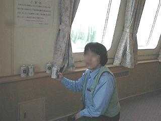 船内を散歩してみると、中程の席には単独のロシア人が多く、椅子席の1等席には家族連れが多かったようです。ビールの自販機に若いロシア人たちが群がっているのを見て、私はその値段にびっくりしました。350ccの札幌黒生が100円です。ロシア人たちの買い占めによって、二つが売り切れになっていました。私は2本買ってかみさんにその話をすると、かみさんはあわてて飛んでいき、5本買い込んできました。国境を渡るフェリーの中は免税なのです。私たちは税抜きビールを堪能しました。