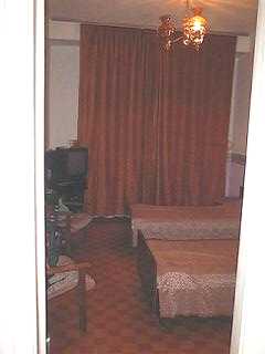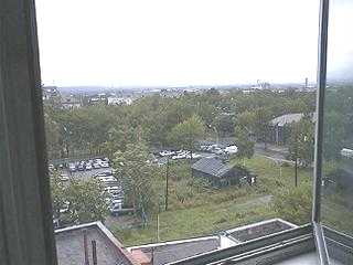 部屋は412号と512号で、私は5階、かみさんは4階のちょうど上下でした。ベッド一つの小さい部屋ですが天井が高く、狭苦しい感じはありません。むしろ一人分としては贅沢な空間に感じます。トイレとシャワーをすまし、着替えるとホッとします。この後、時計を2時間進めてサハリン時間にしました。 |