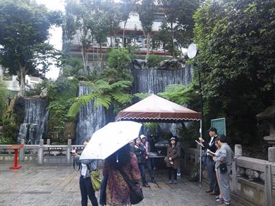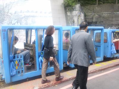 | 外へ出ると大通りを宣伝カーが走っていた。台湾は統一地方選の真っ最中。日本ほどうるさくないが、街頭にはあちこちに巨大なポスターが飾ってある。 これはガイドさんの誰にでも聞いたことだが、与党・馬英九政権の支持率が15%程度で、与党の大敗北は必至だという話だった。(事実、そうなった)馬政権は大陸との友好に熱心で、そのために貿易・観光など経済的にはうまく転がっている。野党政権が出来たらそれがどうなるのか、と心配していた。 |