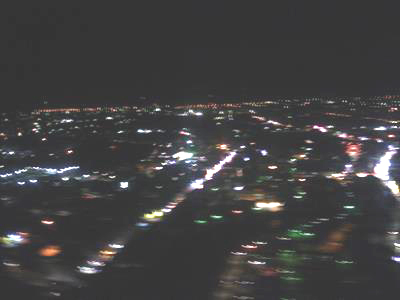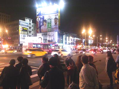 | 空港の入り口で待っていた日本人ガイドのKさんと車に乗り、すでに夜中になってしまった高速道路を台北へと走る。かなり薄暗い道路だが、市街地に近づくにしたがって街明かりが増えて来た。高速を降りてもやっぱり薄暗い街並みだった。 もっとも外国の市街地はどこもこんなもので、夜でも昼間のように明るい日本が異常なのだね。 |