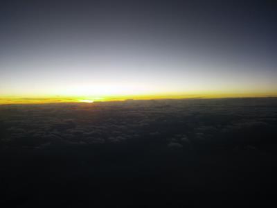 | 11月17日、帰国します。雨模様の中、午後一の便なのに9:00出発。ガイドは女性のTさんです。この方は気さくで話の分かる人だったので途中の「お土産店」をショートカットしてもらいました。車の中ではプライベートを含めて色んな話をしました。ショートカットはいいのですが、その分余計に待ち時間が増えてしまい、空港のVIPルームでまたもや2時間待ちました。 飛行機はどんよりと曇った空に駆け上がり、雲海の上に出ました。(上・左)数時間後、雲海の向こうに夕日が沈むのを見ながら成田空港着。(上・右)距離的にも心理的にも「海外旅行をした」という負担はなく、気楽な旅行でした。また行こうと思います。 |