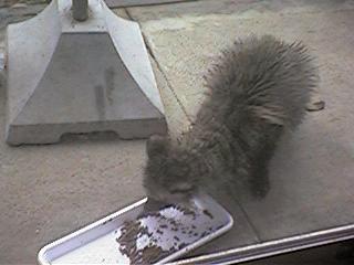 歩くとひょこひょこと足を引き摺り、小刻みに体が震えます。生きているのがやっとという感じ。でも食欲はあるようです。骨付きの鶏肉も、ガリガリと食べてしまいます。