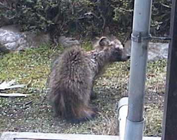 *2000年4月4日、自作パソコンを組み立て中に、猫に呼ばれて階下へ降りると、狸が来ていました。