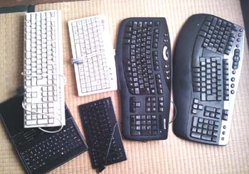11月20日 うちにあるジャンクなキーボードたち。右からMSワイヤレスマルチ、MSカーブ、FCCミニ、チコリー。下はブルートゥース、タブレット用。 MSマルチはファンクションキーがオリジナルで一般用に戻せない設定など色々不具合があったが、ゴージャスで打ちやすくてよかった。半額ならまた買いたい。 MSカーブは値段の割に打ちやすい。10年くらい使ってキーがいくつか反応しなくなったので廃棄。上の四台は年明けに資源ゴミになった。 |