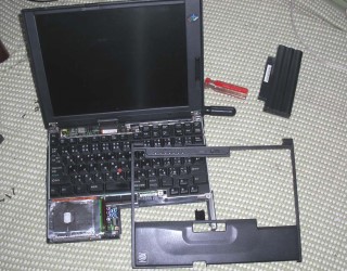 2月06日 次にNEC-La13S14を解体し、HDDを取り出す。裏ねじを外すとフレームがずれてキーボードが外れ、マザボが見える。ただ、HDDを外すだけならここまでする必要はなかった。左下のパームレスト下のスロットはネジ一個で外れた。 続いてThinkpad 560Xを解体してHDDを外す。これも裏ねじ全部を取ってフレームを外すと左下のパームレスト内側にHDDが顔を出す。これはこうしないと取れない設計。IDEコネクタはフィルムだった。(左写真) 資源ごみの日に三台を出してすっきりしたが、なにか寂しい。 |