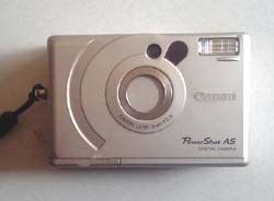 100万画素クラスが3万円台に落ちてきた時期をみはからって二代目を購入しました。決め手は当時最小のサイズ、レンズ口径の大きさ、Cannonのブランドイメージでしょうか。使ってみるとサイズに比べて重さが気になるほかは、多少暗めの画像くらいが不満点で、QV-70の不足を完全に満たしておつりが来るくらいの性能でした。特筆すべきはその頑丈さです。ジュラルミン装甲は何度も落下させたのにほとんど無傷、一度は友人が放り投げてレンガの上に激突したというのに、かすり傷がちょっとついただけ、というマッチョぶりでした。 意外な方向に弱点があり、早い時期にバッテリーケースの蓋の蝶番が外れて取れてしまいました。以後はセロテープを巻いての使用となりました。しかし北海道・沖縄を始め、アイルランド・ガラパゴスと世界の果てまでお供にし、日本の技術力の見本として活躍してくれました。このA-5をベースにしてEXY(イグジー)シリーズが開発され、キャノンがその後のデジカメ界の覇権を握ることになりました。 |