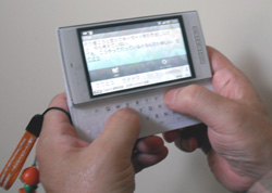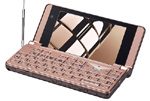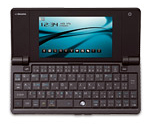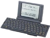これが気に入って買ったガラパゴスのキーボード。店頭デモ機で触ってみて、「これなら使える」と感じたのが最大の購入動機でした。小さいなりにメリハリの利いたタッチ、優秀な文字変換機能、日本語を知り尽くしたキーの配置、これまで使ってみたマシンとは一線を画すツールです。サムタイプなので限界はありますが、欲張らなければそこそこ使えます。 | |