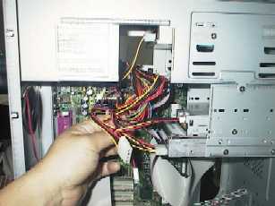 クーリングファンが大きすぎてHDDが取り付けられませんでしたので、いったん付けたFDDを外して、前から入れました。ドライブのマウントが終わりました。
