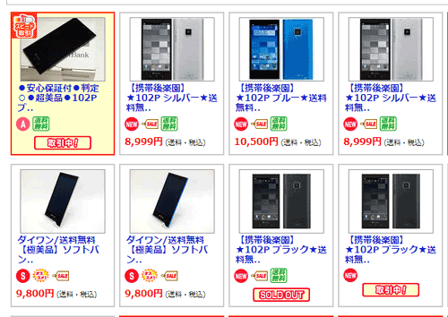 | こちらは対抗馬の102Pのメニュー。4月より上がっています。4月は新品でも10000円、開封品では7000円程度でした。