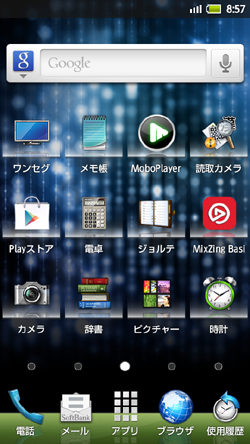 103SHの美点は目立たない点にたくさんあります。アプリのメニューがわかりやすいのもその一つ。アプリのジャンルが分けられており、ダウンロードから各メニューに転送するのが簡単です。ガラパゴスは混乱していました。 ガラパゴスに使っていた32メガマイクロSDカードも刺すだけでさくっと認識され、コンテンツは簡単に移動できました。ただ、電話帳の移動はそれだけではできず、赤外線通信でやりました。これがなかなか認識せず、試行錯誤のあげくやっと移動できました。 |