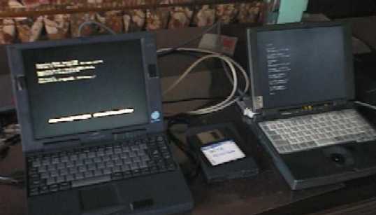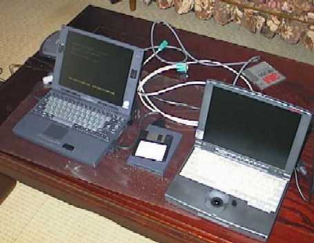 ・・・それで、とにかくクロスケーブルで母艦とレッツノートを繋いでみます。その結果は、動きませんでした。双方ともRdiskは起動するのですが、クライアント側からホスト側を覗いても「接続出来ません」メッセージが出るばかりです。