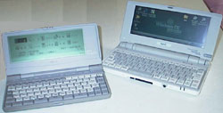 | 外に持ち出せるキーボードマシン、というのに憧れていました。 そこで初めて見たオアシスポケットには感動しました。その経過はこちらのページをご覧ください。 月日は流れ、現在はモバイルギアを使用しています。モバギは実用的ですが、オアポケの感動はありません。モノの持つロマンというのに縁のないマシンなのです。WindowsCEというのが、家電的なOSだからでしょう。 オアポケ3のようにDOSが動くならもっといいけど、せめてオアシスが上書き専用ではなく、挿入モードが普通に出来れば今でも使っているでしょう。 |
