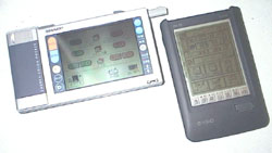 | 電子手帳の比較。もはやどちらも太古のマシンなのですが、両者の間にはさすがに新旧の差があります。 かたやモノクロ、かたやカラー液晶。かたやスタンドアロン、かたやインターネット接続。 横綱とふんどしかつぎくらいの差があります。しかし横綱が完璧かというとそうでもなく、インターネット端末としては中途半端。持ち歩く手帳というだけならRX-10の方が上かも? |
