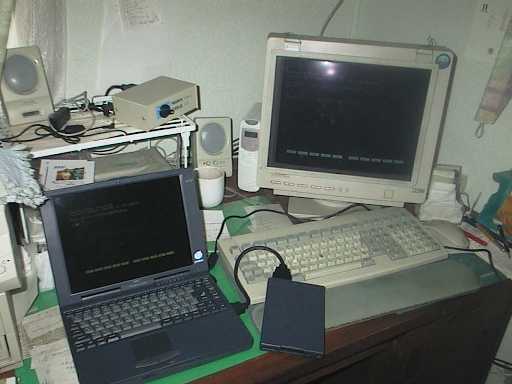 これをドスレベルの裏技でパソコンとノートを接続して、ノートにウィンドウズを組み込んだのです。