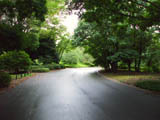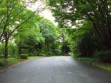昭和記念公園の園内の普通の舗装道路の上をゆっくりと走っている。