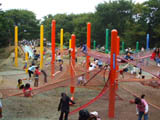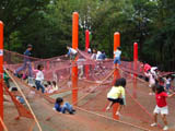 子供達がハンモックの上を、歩いてあちこちに動き回る姿が見られる。
