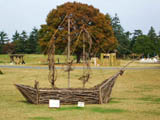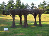 かなり大きな造形で、人の背の高さより高く下を人が歩いて通れる。細かい木の枝を組んである。 |