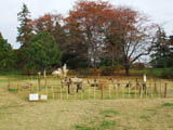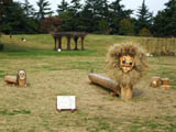 | 柵で囲った小さな動物園か、農園の牧場風の造形。動物や案山子風の木の人形が置いてある。