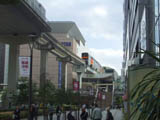 | 立川駅北口前のペデストリアンデッキ上から、モノレール立川北駅の正面を見た所。