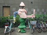 すぐ前の通路は自転車がいつも置かれていて、この彫刻は間近でよく見ることが出来ない。 |