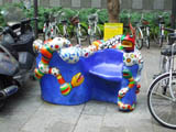 色が随分と派手なので遊園地の人形みたいで現代彫刻にはとても見えない。