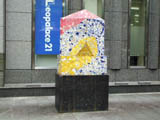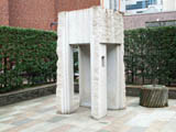 | ファーレ立川横の公園の「憩いの広場」にある造形。一見したところトイレにも見えるがどこにもドアはない。夜だったら酔っぱらいがトイレと間違えそうな造形で彫刻にはとても見えないが、一応は彫刻らしい。水槽か道具置き場にも見えるこの造形どう鑑賞すればいいのか判らない。 |
