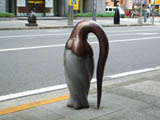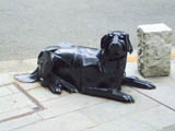 高島屋駐車場入り口の舗道にある、大型犬の鉄製の像。