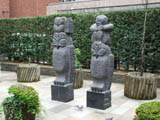 | ファーレ立川横の公園「憩いの広場」にあるトーテムポール風石像。フクロウと猿の組み合わせらしく、ポリネシアかエジプトあたりの民芸品風の印象がある。わかりやすい彫刻なので公園の雰囲気にはよく合っている。 |