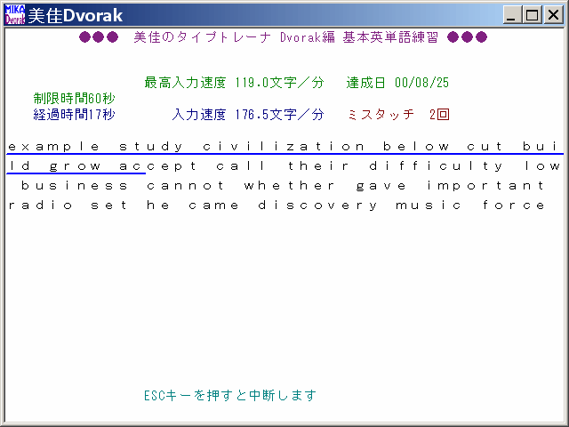 美佳のタイプトレーナDvorak編英単語練習基本英単語