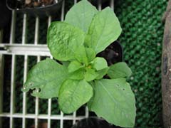| 4/27 ずいぶんと大きくなりました.写真ではわかりにくいですが,小さな花芽が出てきました.ハモグリバエの被害がひどいです. |