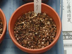 | 1日目 8/27 今年は3.5号鉢にバーミキュライトを入れて種まきをしました.室温は夜間でも30度以上.発芽適温を守らず今年も種まき開始です. |