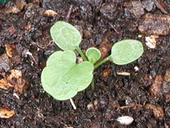 13日目 9/8 発芽したところと離れた場所で大きな双葉が開いています(^^;) なかには本葉が出てきているものもあり,今回一番成長の早い種類です. |