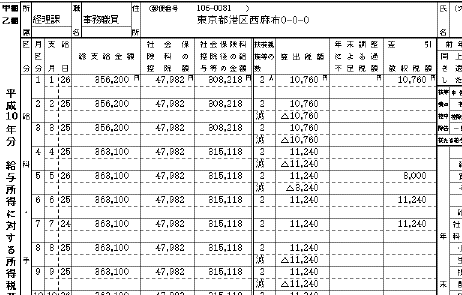 EXCEL年末調整は平成10年分の年末調整の計算を行い、源泉徴収簿及び源泉徴収票(給与支払報告書)を作成するEXCELのテンプレートです。