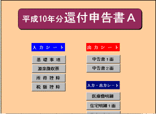 EXCEL還付申告H10は平成10年分の「給与所得者の還付申告書」を作成するEXCEL97のテンプレートです。