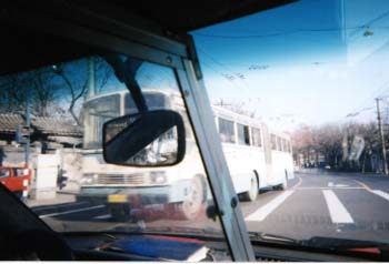 タクシーの助手席からみた風景。