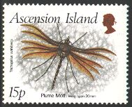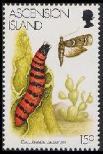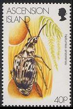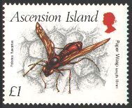 Insect Stamp of Ascension IslandThe Ascension island is the colony in Britain and is the volcanic island which is on the southern Atlantic Ocean located in 1131km northwest of St.Helena Island and located in 1700 miles from Brazil and 1300 miles from Angola. The Ascension island is the 88 square kilo of area, population 1103 people (March, 1999) and administratively belongs to St.Helena. The U.S. Forces used it as a guided missile tracking station, and English air force also established the garrison newly in 1984. The Falkland Islands etc. is an important relay ground to the direction of the southern Atlantic Ocean, and is the sources of an income where sightseeing is main.