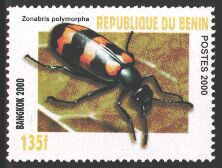 Insect Stamp of Republic of BeninBenin is the country located in the Africa Gulf of Guinea northern coast, Niger, Burkina Faso, and the east are in contact of Nigeria, and west is in contact with Togo for north. It became independent of France as Dahome in 1960. The name was changed to the Benin people republic in 1975, and is again changed to Republic of Benin in 1990.