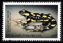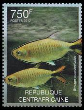 Four kinds of fish stamps were issued in 1995 by the small landlocked country located in the African center called this Central African Republic. There are a color and a face value difference by the same design and is two kinds for the kind of the design.