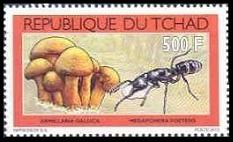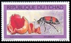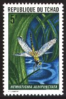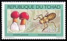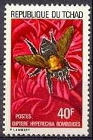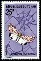 Five kinds of the stamps of an insect and a spider were issued from Chad in 1972. An insect is drawn on three kinds of small amounts, and the spider is drawn on two kinds of large amounts.