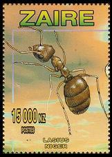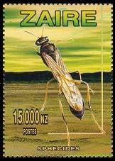One piece of small sheet comprising one kind of spider stamp and three kinds of insect stamps was issued in 1996 from the Republic of Zaire.