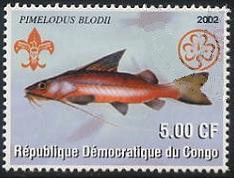 Six kinds of stamps on which it memorialized Boy Scout activity in 2002, and assumed various animals a motif was issued by Democratic Republic of Congo. It introduce six kinds of catfish stamps from this.