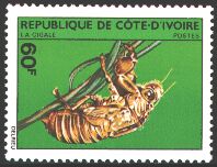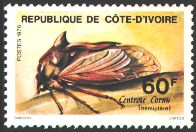 Four kinds of insect stamps were issued from this Cote d'Ivoire in 1978. The insect of the Africa specialty is chosen, and it is drawn ecologically, and is one of the favorite stamps.