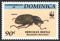As a beetle stamp of the nature protection, four kinds of stamps describing the Hercules Beetle were issued in 1994.