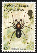 Three kinds of insects and three kinds of ticks or spider, a total of six-kind set was issued from this Falkland Islands Dependencies in 1982. The insect lives also near a polar zone like the South Pole.