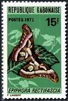 Four kinds of butterfly and moth stamps were issued from Gabon in 1971.